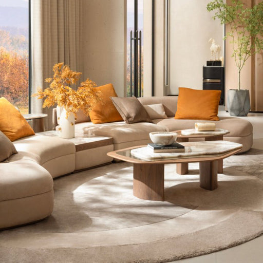 Precio original $3,157.00 - Precio original $3,157.00Precio original$3,157.00$3,157.00 - $3,157.00Precio actual $3,157.00| /Color: Nogal, Picasso y beige Composición: Madera de fresno, mármol natural y microfibra Tamaño: Mesa de centro 120 x 80 x 32 cm Mesa lateral D 52 ...